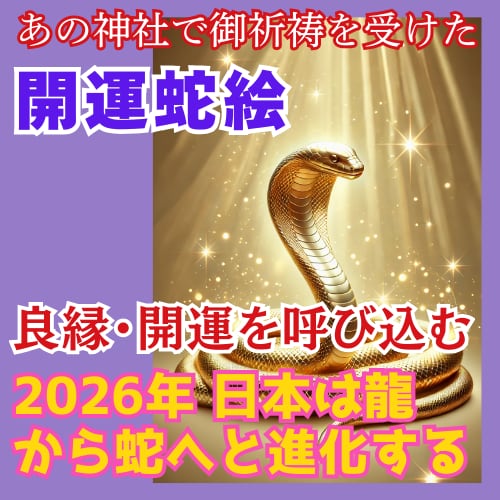 コブラは蛇界の王と称され、他を寄せ付けない圧倒的な存在、金運上昇、復活と再生、不老長寿や力強い生命力、悪縁を遠ざけるなど総合的に大変縁起のよい象徴であり、また「神の使い」としても崇められてきました。2025年は全方位で最高の運気を呼び込み、爆発的な幸運を招き入れましょう。